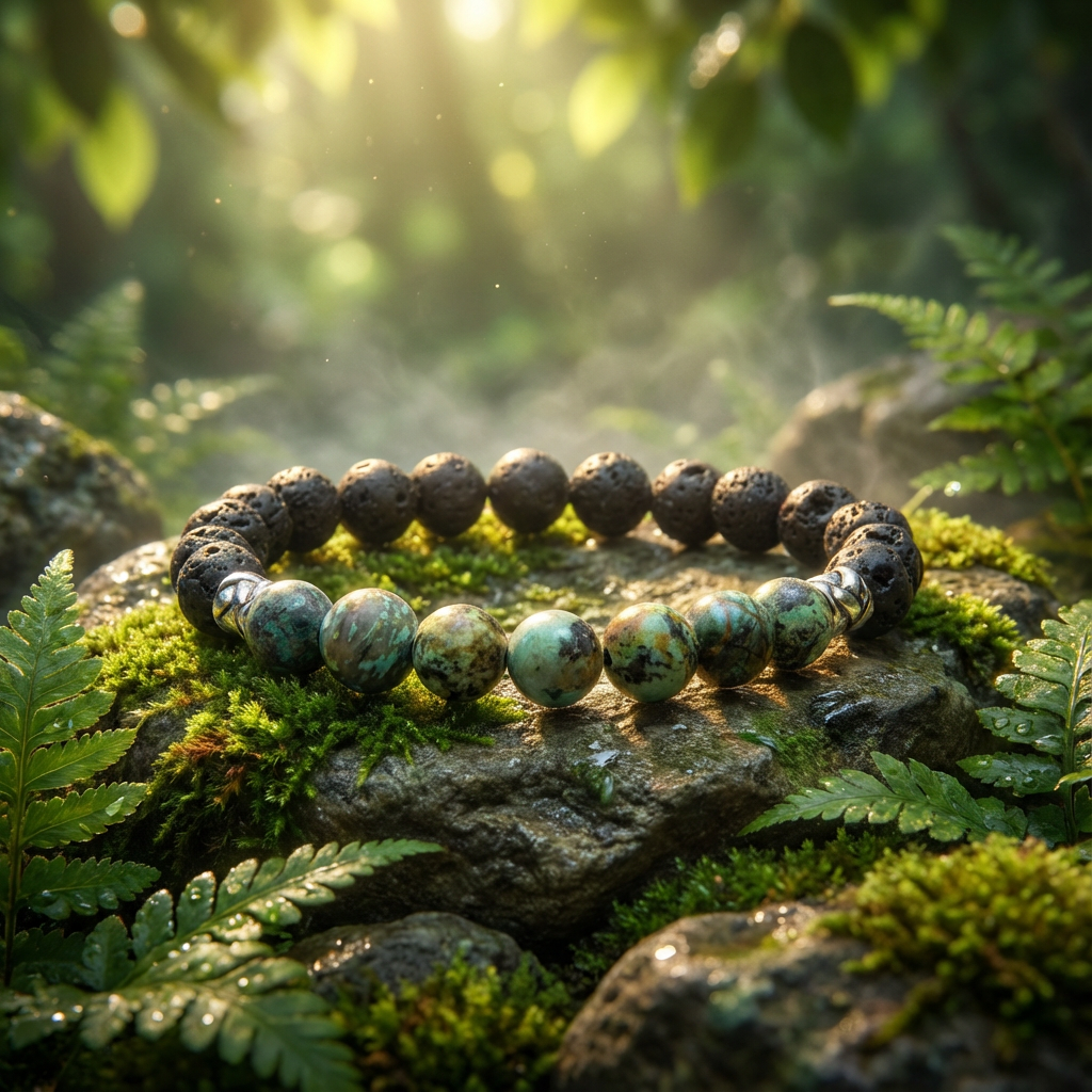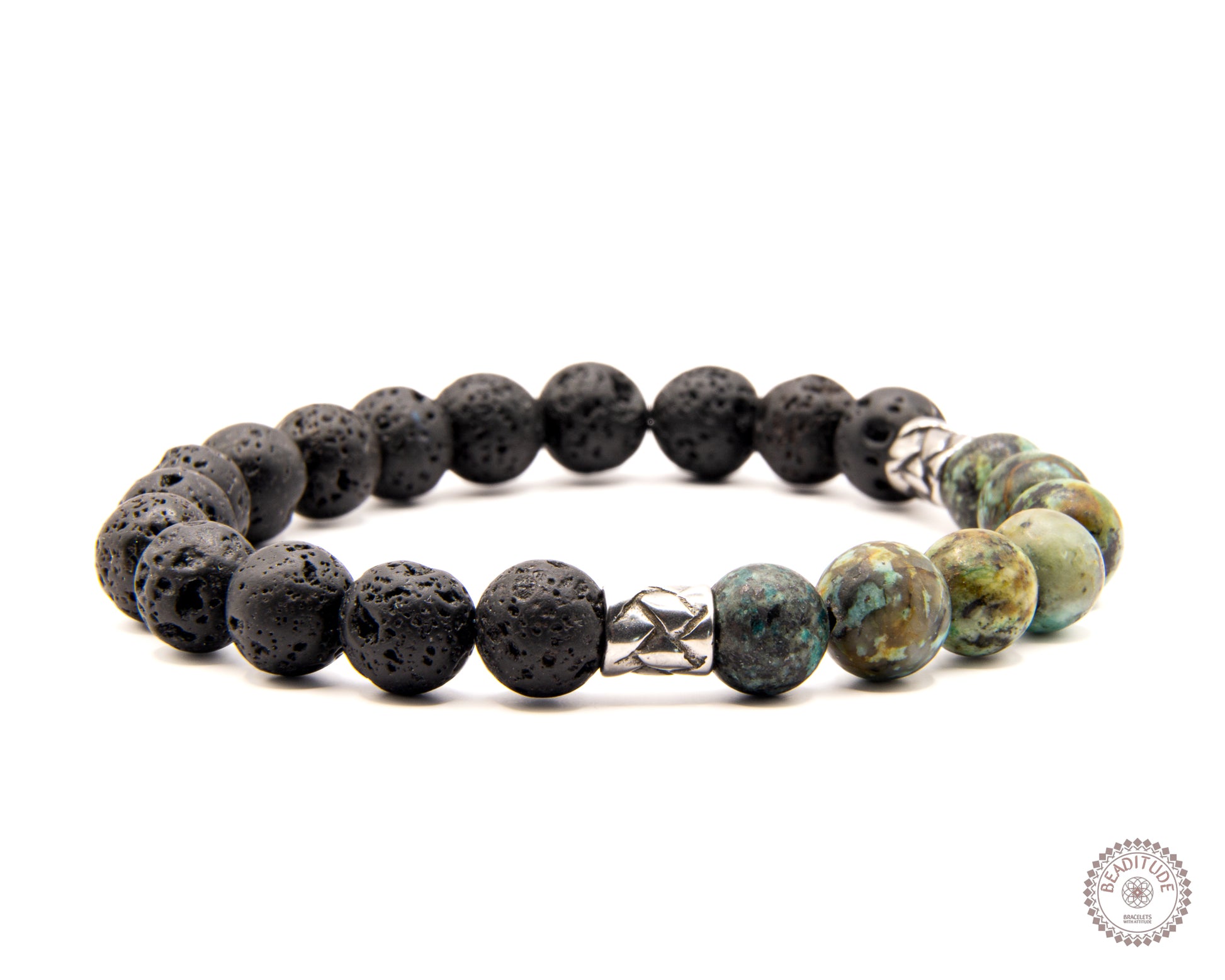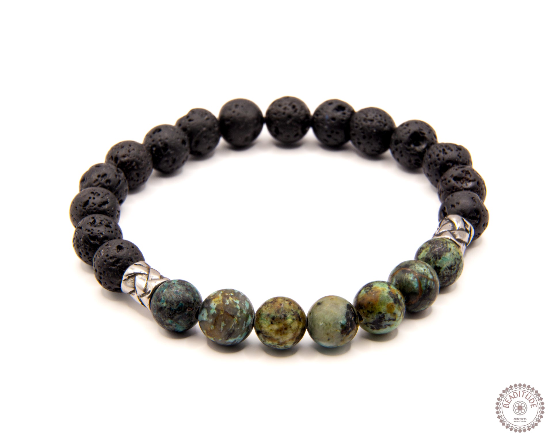 - 8 mm Afrikaanse Turkoois & Lava steen