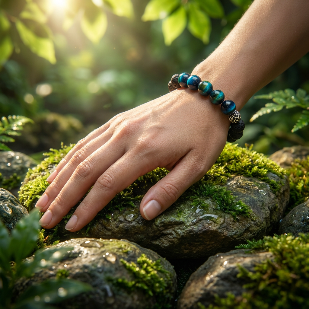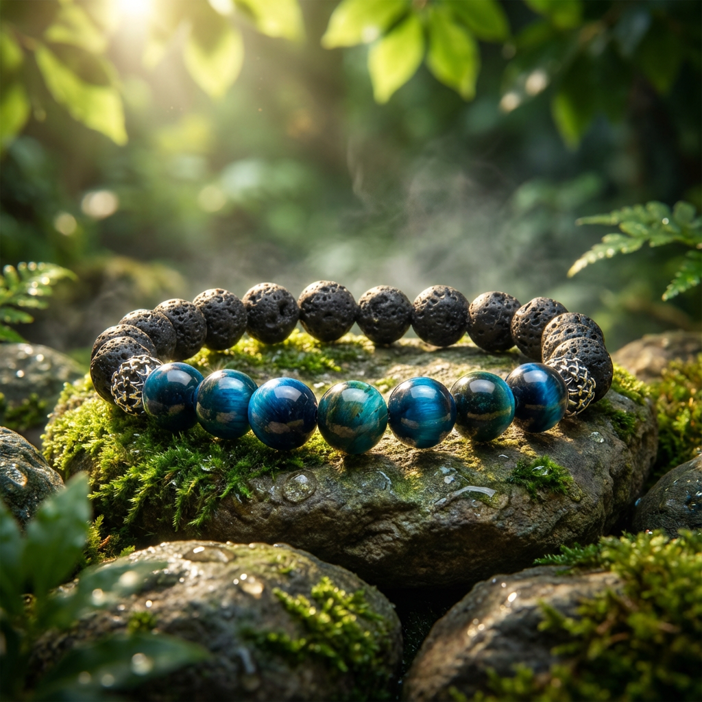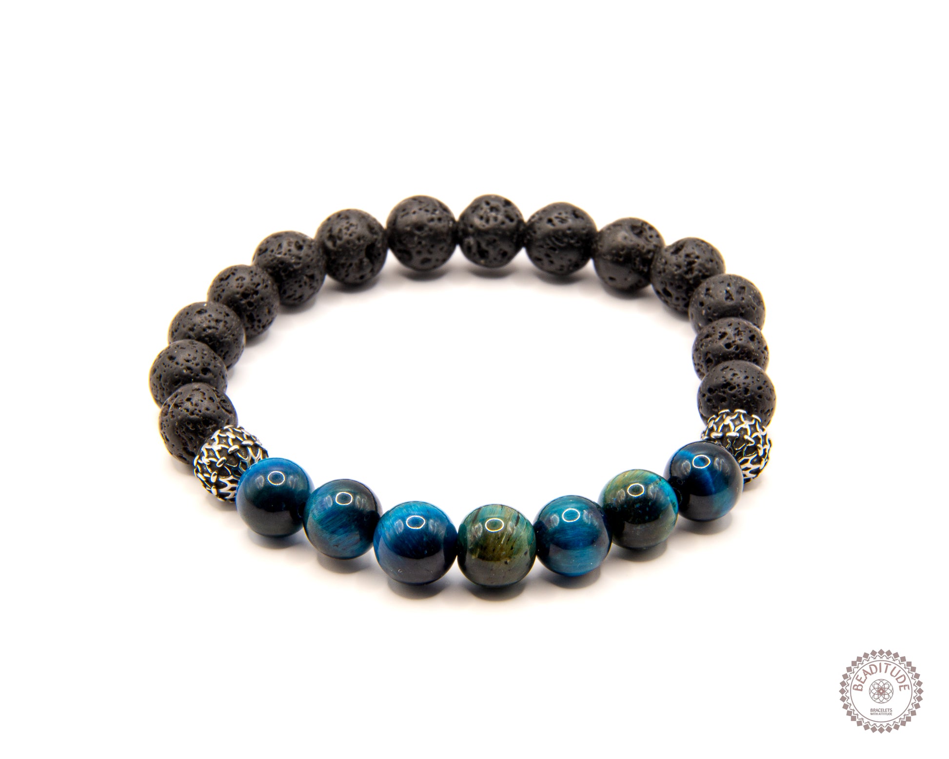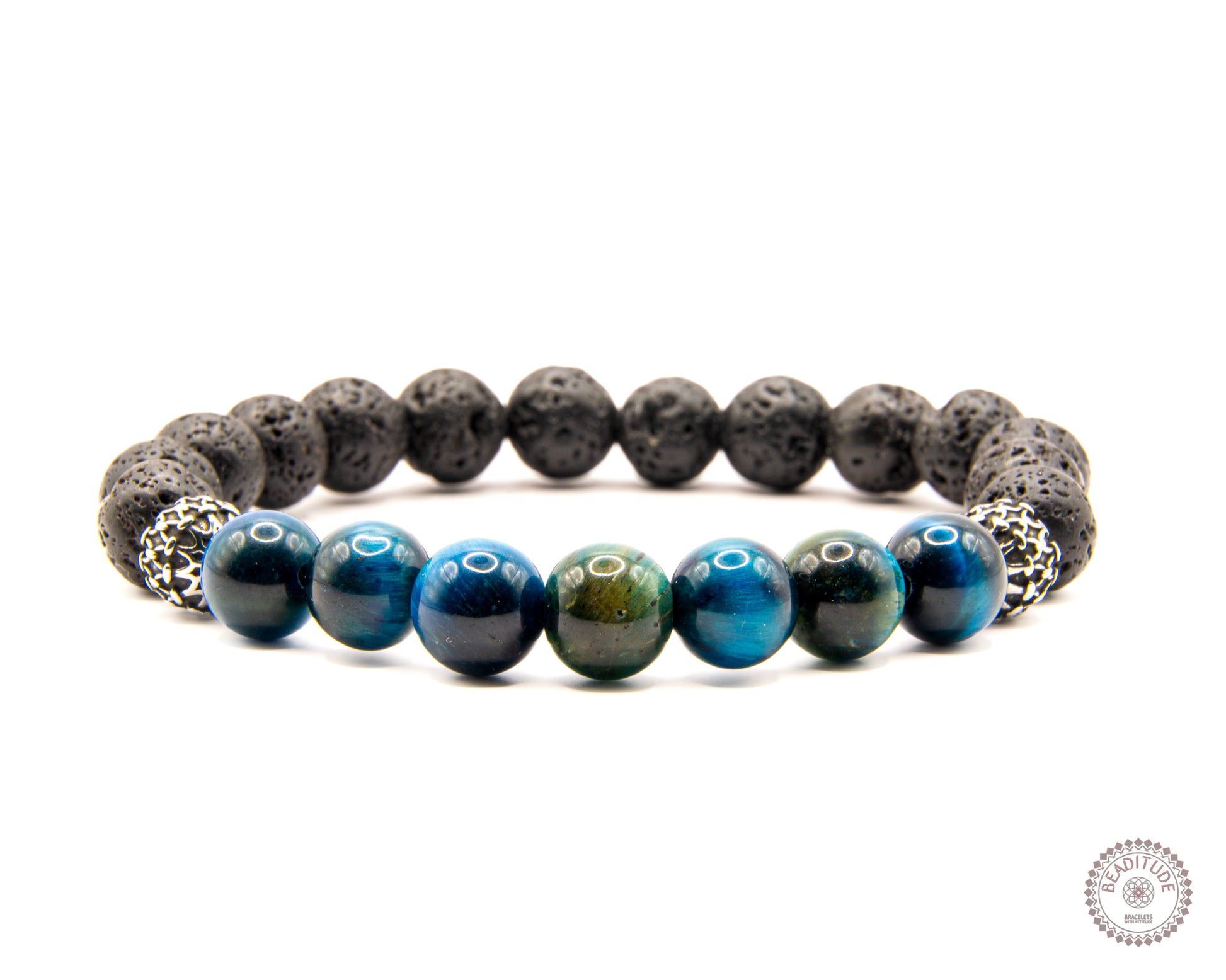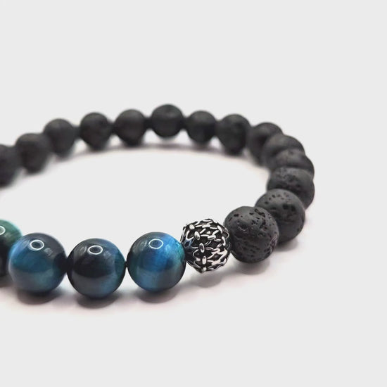 - 8 mm Blauwe Tijgeroog & Lava steen