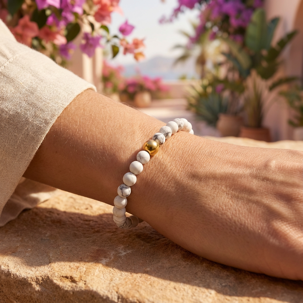 Howliet is een fijne steen met een kalmerende werking, met name wanneer je boos of gefrustreerd bent. Howliet helpt je om controle over je leven of een situatie te krijgen. Door de rustgevende energie helpt Howliet bij slaapproblemen, remt malende gedachten en beschermt je tegen nachtmerries.