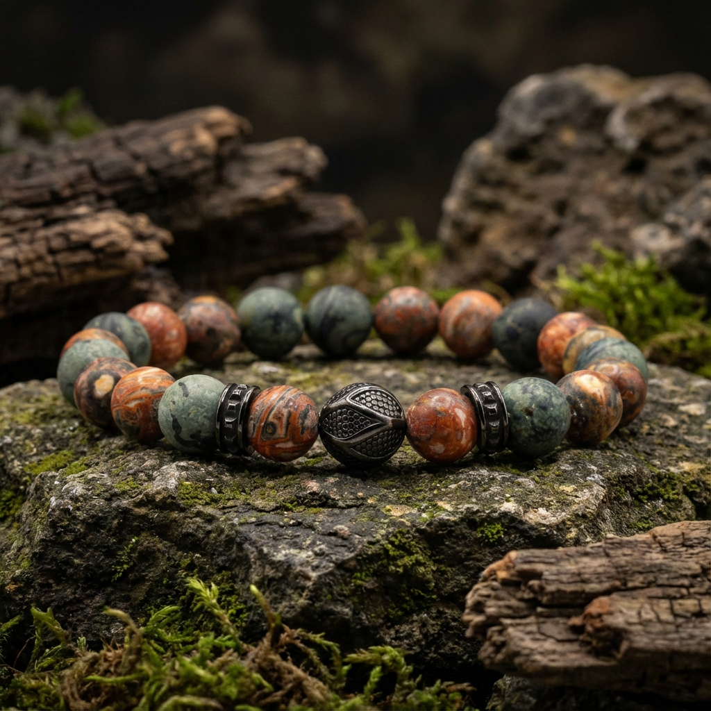 - 8 mm Luipaard Jaspis & Kambaba Jaspis (mat)