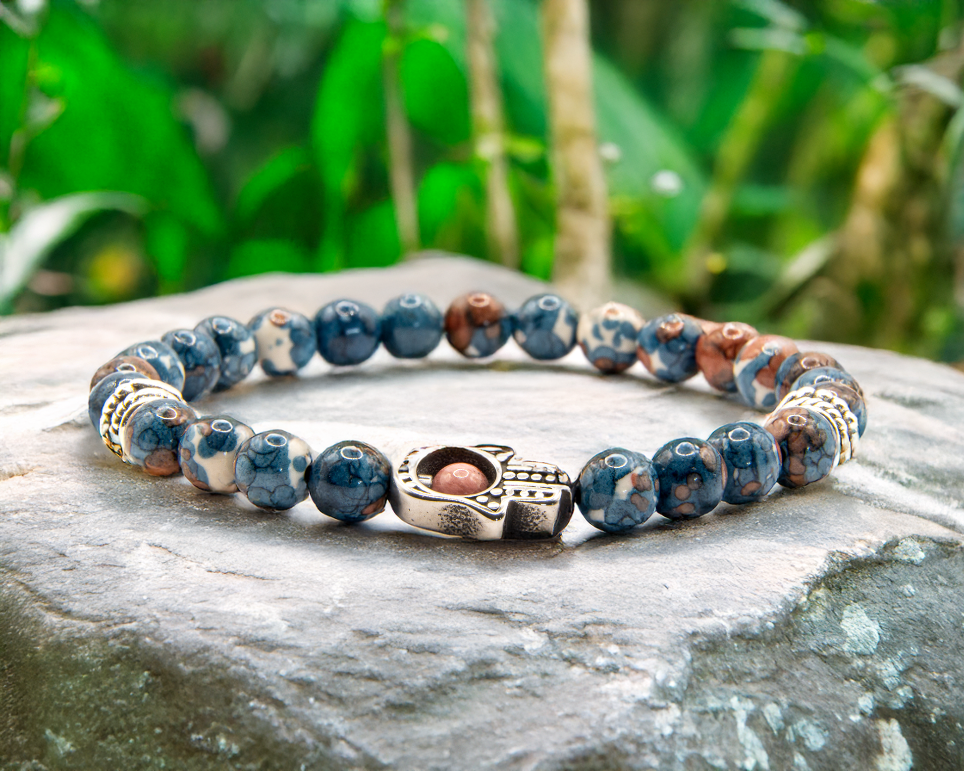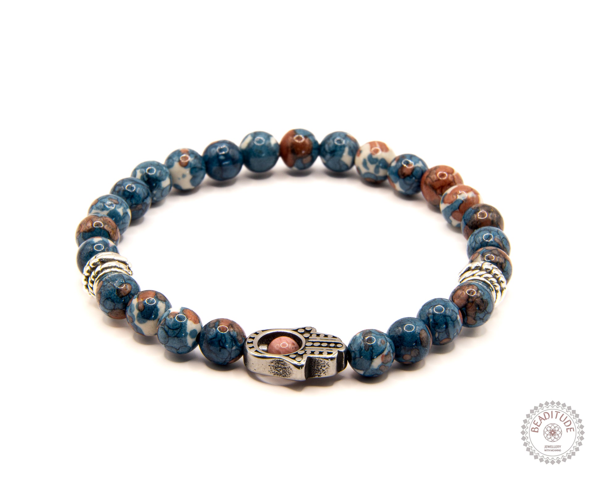 Het gelukshandje, ook wel Hamsa of hand van Fatima genoemd, brengt de drager geluk en geeft bescherming tegen het kwaad. Daarnaast wordt een open hand gezien als universeel symbool voor vrede, omdat je er niets in verborgen kunt houden. Naast een teken van vriendschap is het ook een teken van bescherming; het zegt STOP tegen het kwaad wat op je af komt. In de handpalm wordt vaak een oog afgebeeld. Dit is de nazar die bescherming biedt tegen het kwade oog.